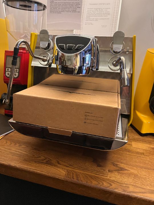 Машина имеет обновленный корпус: основание и боковые пластиковые панели - красного глянцевого цвета, задняя панель - со стальной вставкой; рабочая поверхность из нержавеющей стали, зеркальце обратного вида (позволяет видеть экстракцию и состояние сеточки, прокладки группы). Медный бойлер объемом 11л оснащён предохранительным клапаном, антивакуумным клапаном, реле давления, системой автоматического заполнения. Гидравлическая система включает в себя: встроенную волюметрическую помпу, манометр давления, индикатор уровня воды.